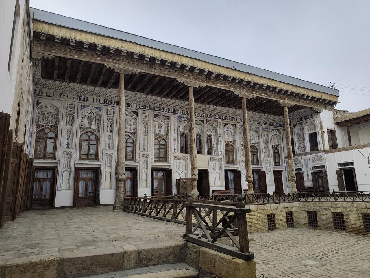 Во время нашей прогулки по Бухаре мы обнаружили любопытный музей — Мемориальный музей Файзуллы Ходжаева, который ранее был известен как Дом-музей богатого узбекского купца. Этот этнографический музей расположен в исторической части старого города, в квартале Гозиён. До революции 1917 года этот роскошный дом принадлежал отцу Файзуллы Ходжаева — Губайдулло Ходже Касым Ходжаеву, узбекскому купцу-миллионеру, торговавшему каракулем в России, Германии и других странах.