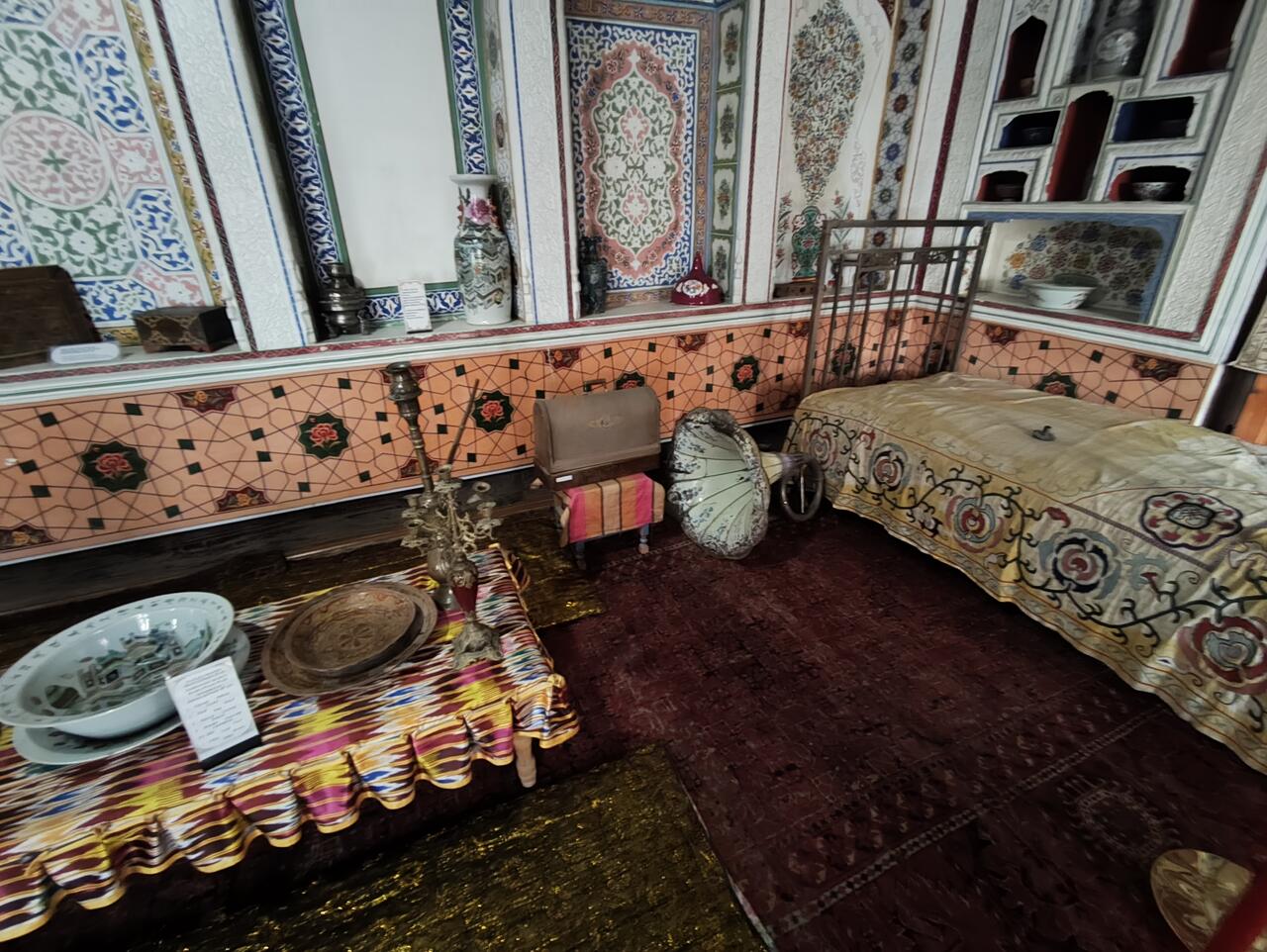 В отреставрированных жилых комнатах воссоздано старинное убранство конца XIX — начала XX веков: воссозданы интерьеры, представлена одежда, посуда, вазы, подсвечники и музыкальные инструменты того времени. Так жили богатые представители узбекского купечества.