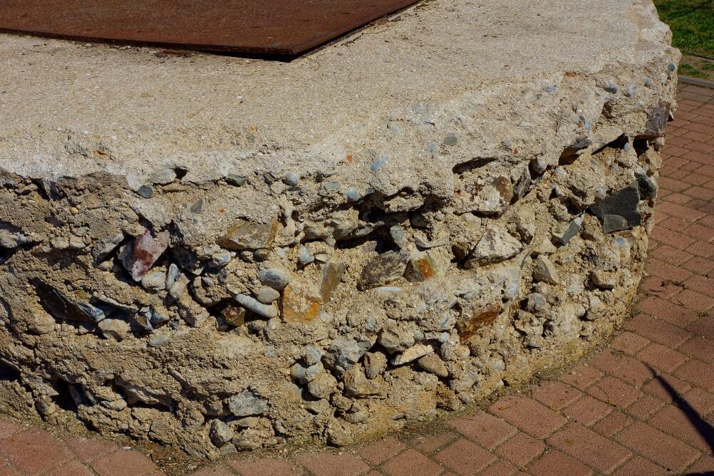 Такие памятники не редкость. Подобные есть в Керчи и других местах. Удивителен состав бетона. Чем? Пояснение простое. Качество бетона зависит не столько от свойств наполнителя и вяжущего материала по отдельности, сколько от их соответствия друг другу. То есть, наполнитель- щебень и песок, по свойствам и размерам должны соответствовать вяжущей способности цемента.