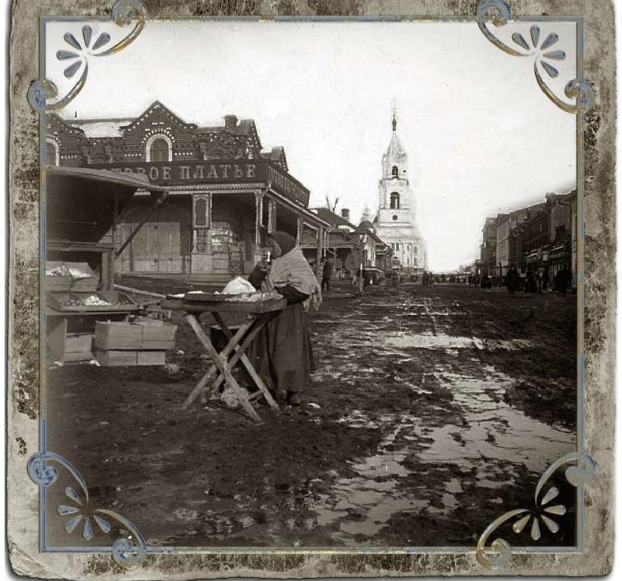 История кашинского торга уходит корнями в глубокую древность. Ещё в XVII веке на посаде, поближе к торгу, стояли деревянные лавки, гостиный двор и торговые ряды. Кстати даже сейчас стоишь и прямо видишь и слышишь этих торговцев со всякими гусями и топорами )) Само расположение города способствовало развитию торговли, река Кашинка, впадающая в Волгу всего в 17 километрах, давала местным купцам возможность торговать со всем Поволжьем, а сходившиеся здесь дороги вели в Москву, Тверь, Бежецк, Углич и Ярославль.