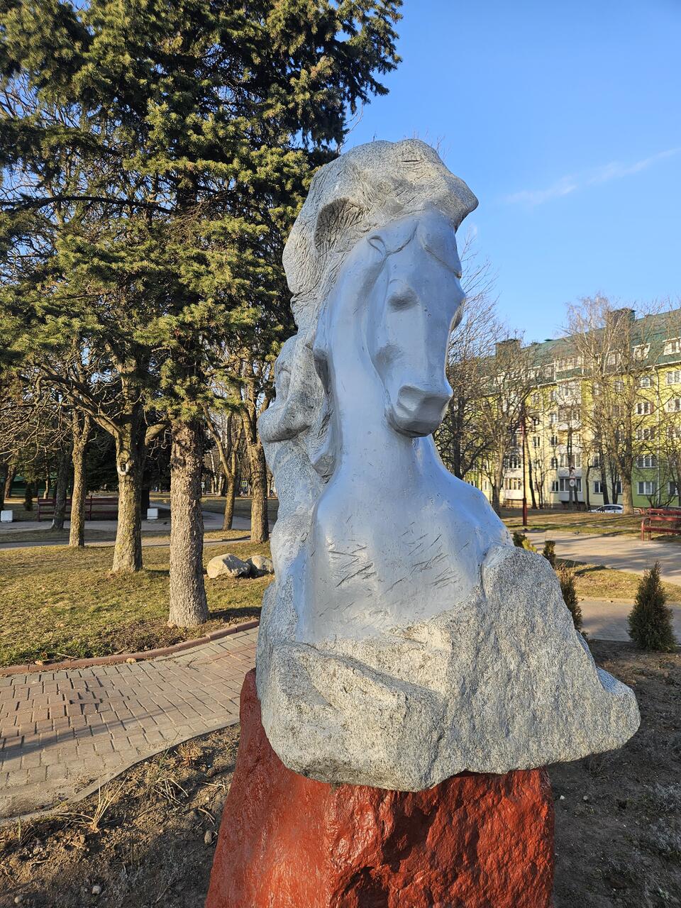 Посетители могут наслаждаться спокойствием и красотой этого места, гуляя по широким дорожкам, которые идеально подходят для прогулок с детьми. На бульваре есть множество скамеек, где можно отдохнуть, почитать книгу или пообщаться с друзьями. Детские игровые площадки и бегающие белочки добавляют уюта и веселья, делая бульвар идеальным местом для семейного отдыха. Особое внимание привлекает каменный постамент с изображением головы коня, символизирующий связь с историей и культурой.