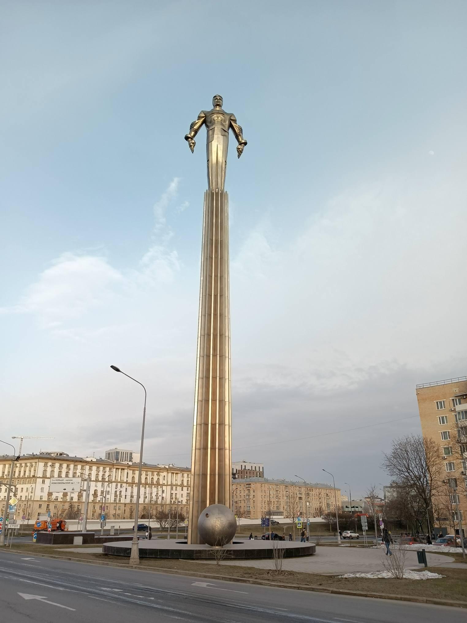 Работа скульптора Павла Бондаренко был установлен в Москве 4 июля 1980 года на одноимённой площади на Ленинском проспекте. Монумент изготовлен из титана — металла, используемого при строительстве космических кораблей. Имеет статус выявленного объекта культурного наследия.
