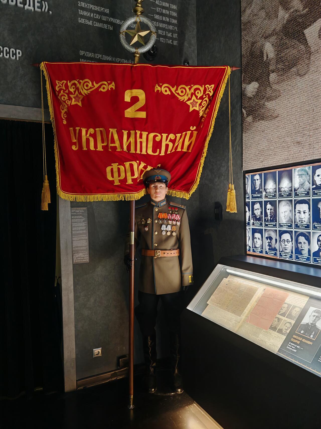 На стенах — грандиозное фотопанно из более чем 33 миллионов портретов участников войны. Благодаря интерактивным экранам можно найти фото своих родных: если оно уже загружено в базу, система подскажет, где его увидеть. А если нет — вы можете добавить снимок сами, чтобы сохранить память навсегда.