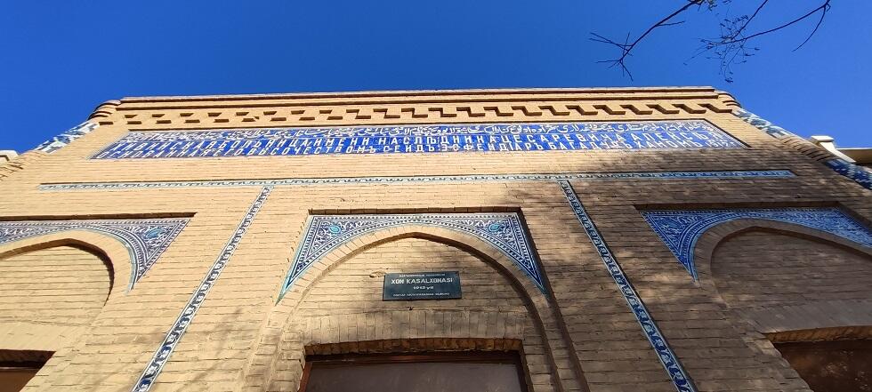 Привычный уже облик хивинской архитектуры здания на фасаде украшен привычной же восточной лазурной майоликой. И вдруг вместо арабской вязи буквы на майоликовом фасаде сложились в надпись на русском языке: «Хивинская больница имени наследника цесаревича Алексея». Больничный комплекс простирается на несколько сотен метров вдоль стен внутреннего города-крепости Ичан-Калы. Сооружение является шедевром эклектичной архитектуры: западные влияния смешаны с местными мотивами. Комплекс был возведен в начале XX века известным хивинским художником Абдуллой Балтаевым благодаря стараниям визиря хана – Ислам-Ходжи. В те годы лекарей-знахарей (табибов) начали заменять профессиональными врачами, чьи знания превосходили традиционное врачевание. Так, в 1912 году была создана первая больница в ханстве. Здесь работали врачи из разных уголков Российской империи, штат быстро расширялся и даже появилось женское отделение.
