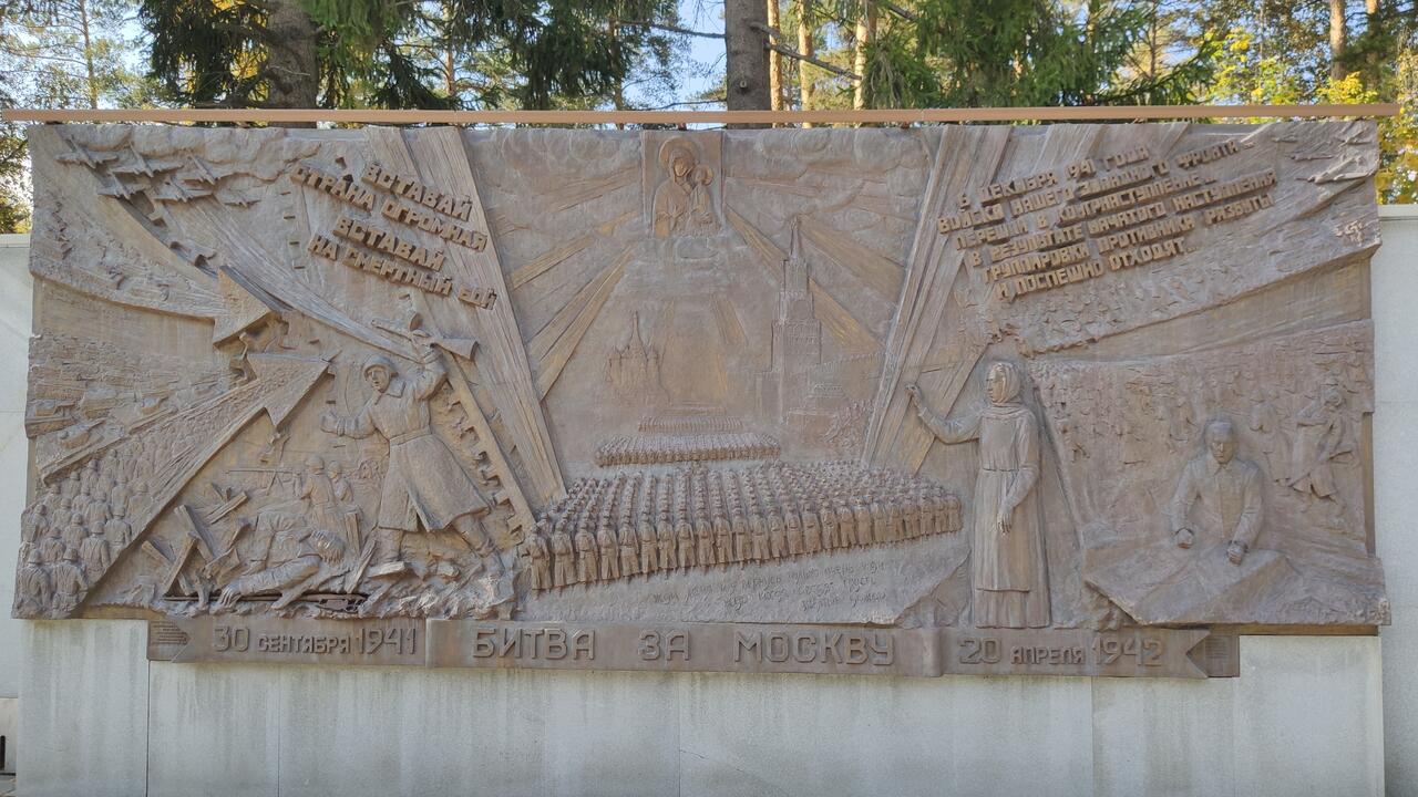 - На барельефе "Битва за Москву", рядом с телом убитого красноармейца, можно увидеть настоящую винтовку Мосина, вплавленную в бронзу. Её нашли поисковики на местах боёв под Москвой.