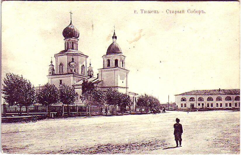 Первый каменный храм Тюмени, до 1913 года - соборный храм города. Располагался на высоком берегу Туры напротив здания Городской думы.