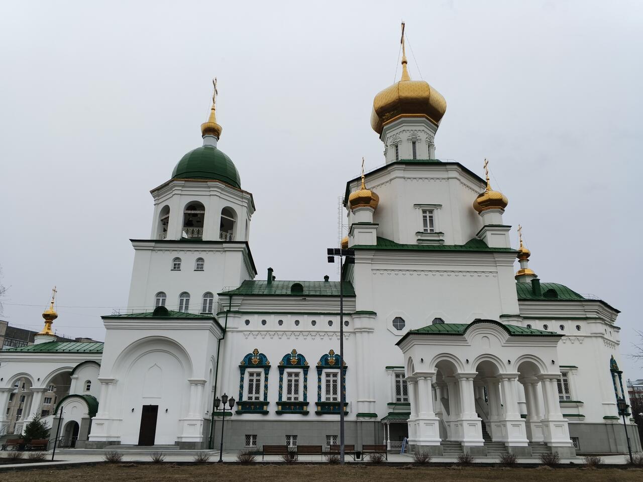 Собор имел пять маковок на главном куполе, колокольню, ризницу, а под своим фундаментом - казенные амбары, которые являлись первыми каменными строениями в городе.