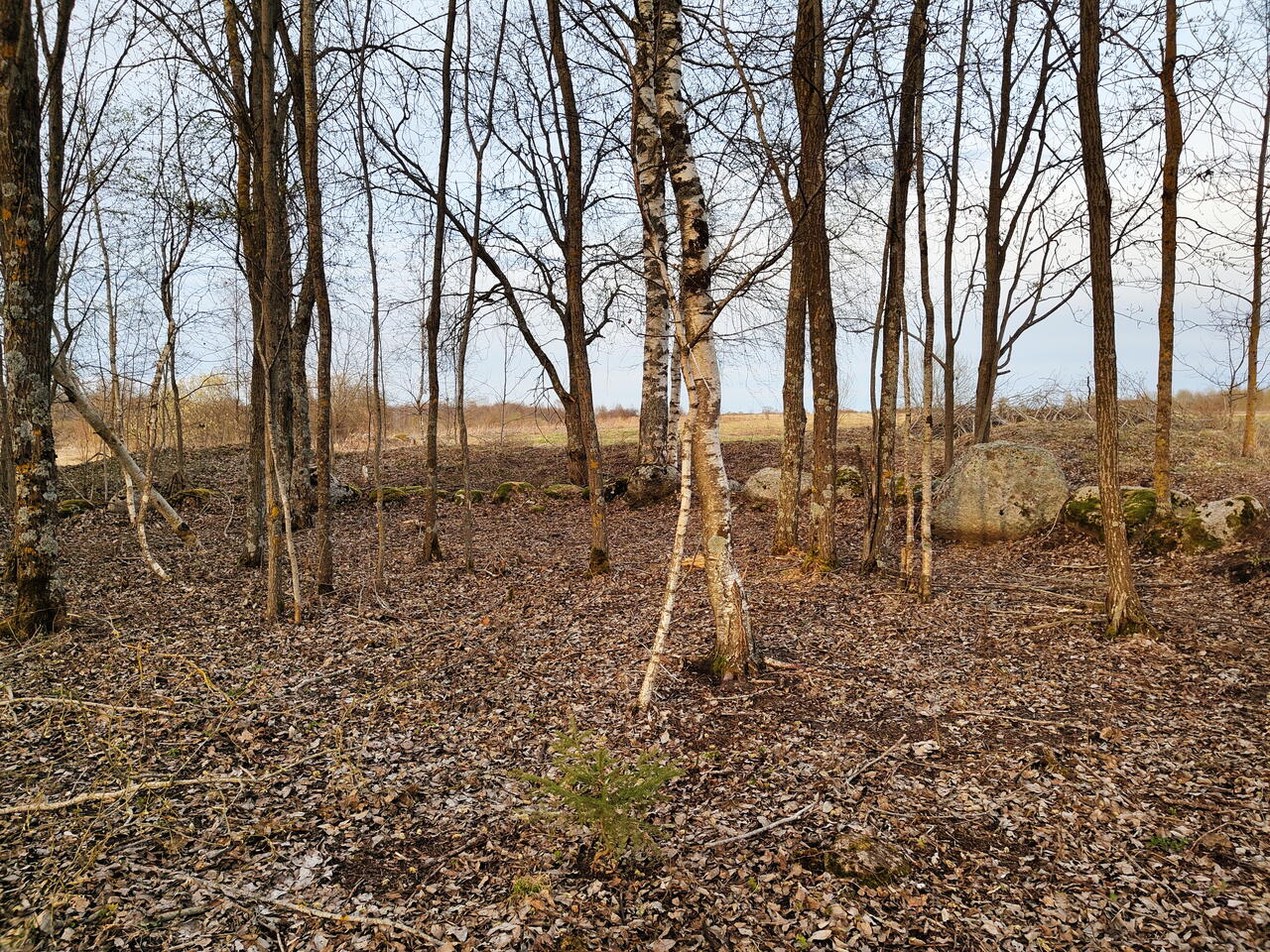 Это место выглядит абсолютно непримечательно. И ехать сюда за красивыми видами бессмысленно. Но именно здесь примерно 1-1,5 тысячи лет назад приильменские словене затратив, очевидно, немало усилий, сложили из больших валунов овальное кольцо камней.