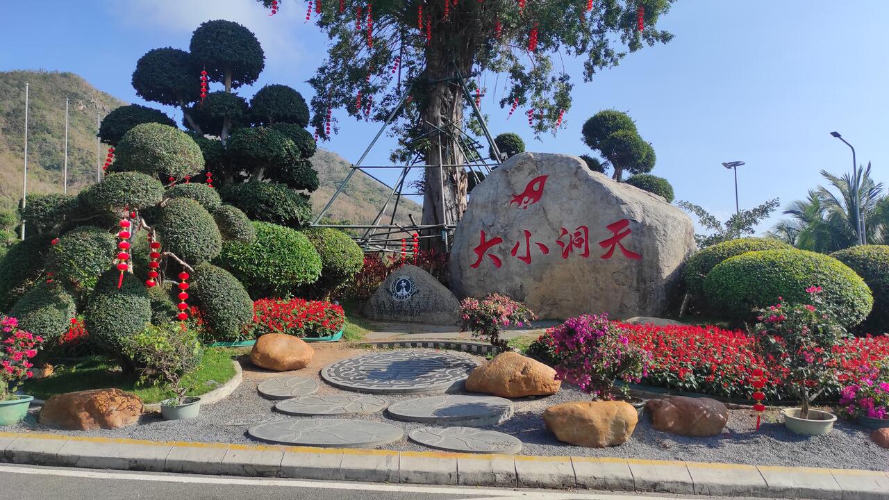 На китайском парк небесные гроты записывается как 大小洞天. Название расшифровывается так: 大 — большой, 小 — малый, 洞天 — «небесный грот» или «небесная пещера». Это понятие из даосской космологии: грот, через который можно «выйти» в иное измерение бытия.