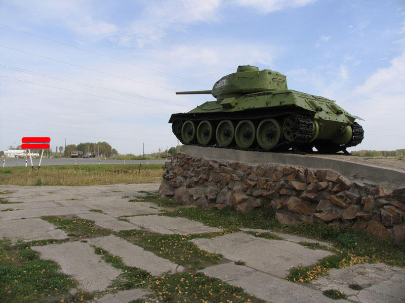 На развилке дорог около сёл Уксянское и Любимово Далматовского района Курганской области на высоком постаменте установлен легендарный танк «Т-34» с надписью на башне «Тракторист Уксянской МТС Курганской области». Этот памятник появился здесь не случайно. Он напоминает о вкладе местных жителей в Великую Победу.