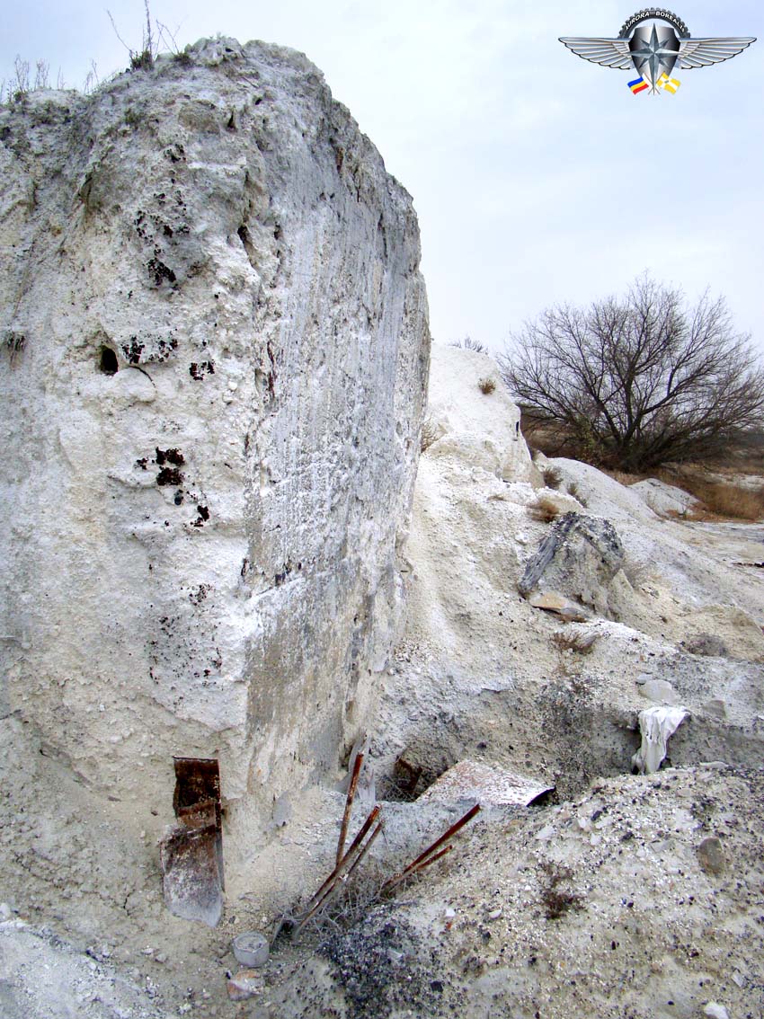 На вершине самого высокого из здешних холмов голова кружится от налитого кислородом воздуха. Слабый ветерок гонит по земле белую пыль. Тут и там попадаются «чёртовы пальцы» - окаменелое наследие Мелового периода. Места эти похожи на соляную пустыню - сухую, белую, безлюдную… Призраками из прошлого являются останки строений – следы меловых разработок, конвейера, завода. Изредка попадётся, как обрывок старой фотографии, какая-нибудь железяка с тех далёких уже времён, когда здесь кипела жизнь…