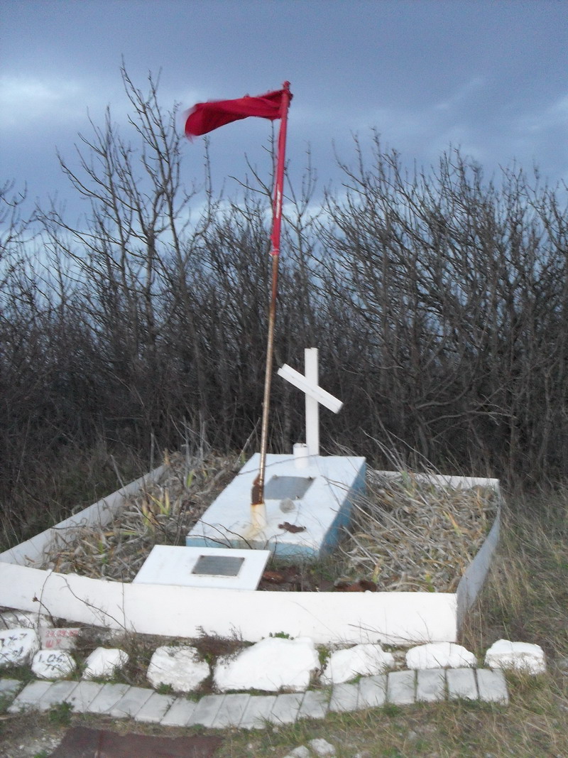 Дорога постепенно набирает высоту поднимаясь к перевалу 7 Ветров. Ещё несколько поворотов и перевальная точка достигнута и вот уже машина мчится вниз, немного притормаживая на виражах, на одном из которых есть неприметный поворот в лес. Вот туда то нам и надо (N44°44.1'; E37°51.98'). Проехав несколько километров по грунтовой дороге выезжаем на перевал над цементными карьерами. Всё, машина становится бесполезной игрушкой которую можно оставить внизу и, одев удобную обувь, можно продолжить путь вверх на вершину. Бугор, находящийс справа от нас, только с первого взгляда кажется неприметным, на самом деле это самая высокая вершина из тех, что окружают Новороссийск, ее высота 558 метров. Узкие тропки которые вются по крутому склону сходятся ближе к вершине, а мы продолжая путь вверх начинаем замечать сначала алую точку, а потом понимаем что это флаг, развивающийся и хлопающий полотнищем на сильном Новороссийском ветру. Под флагом мы видим сваренный из куска рельса и выкрашенный в белый цвет крест памятника Павлу Когану, погибшему здесь во время Великой Отечественной войны. Павел Давыдович Коган, родившийся в Киеве 4 июля 1918, — советский поэт романтического направления. В 1922 году вместе с родителями переехал в Москву.