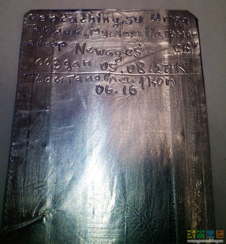 На верхней (жестяной) обложке теперь нужно тем или иным способом написать название тайника и прочие данные.