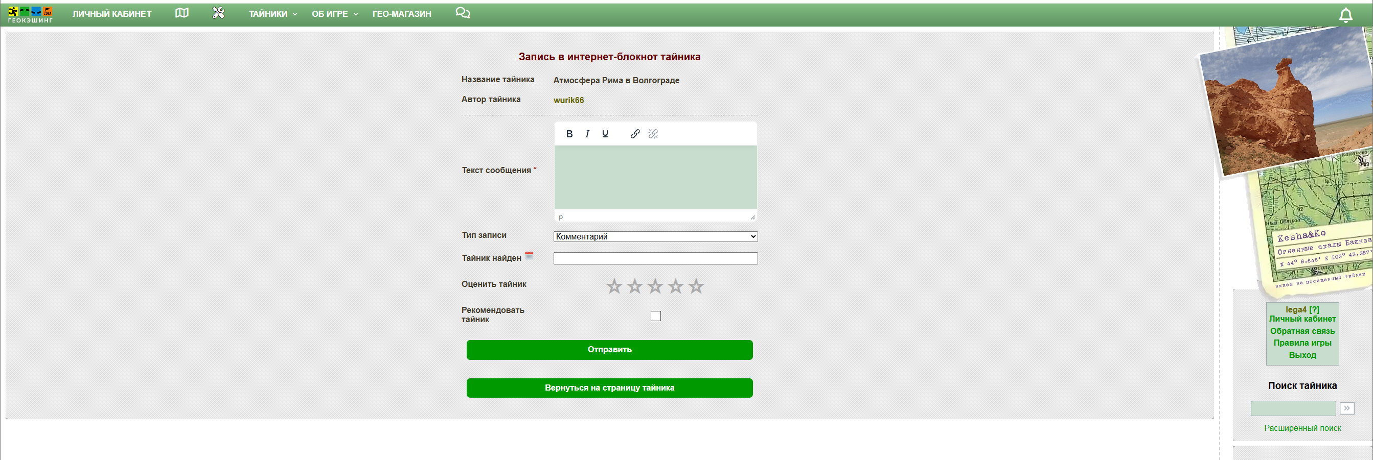 Обновил редактор для записей в блокноте, заодно поправил (надеюсь) дублирование новых строк при отображении записей. Обновил фон везде на стандартный геокешерский (в т.ч. в админке и при редактировании тайника), размер шрифта также теперь стандартный.