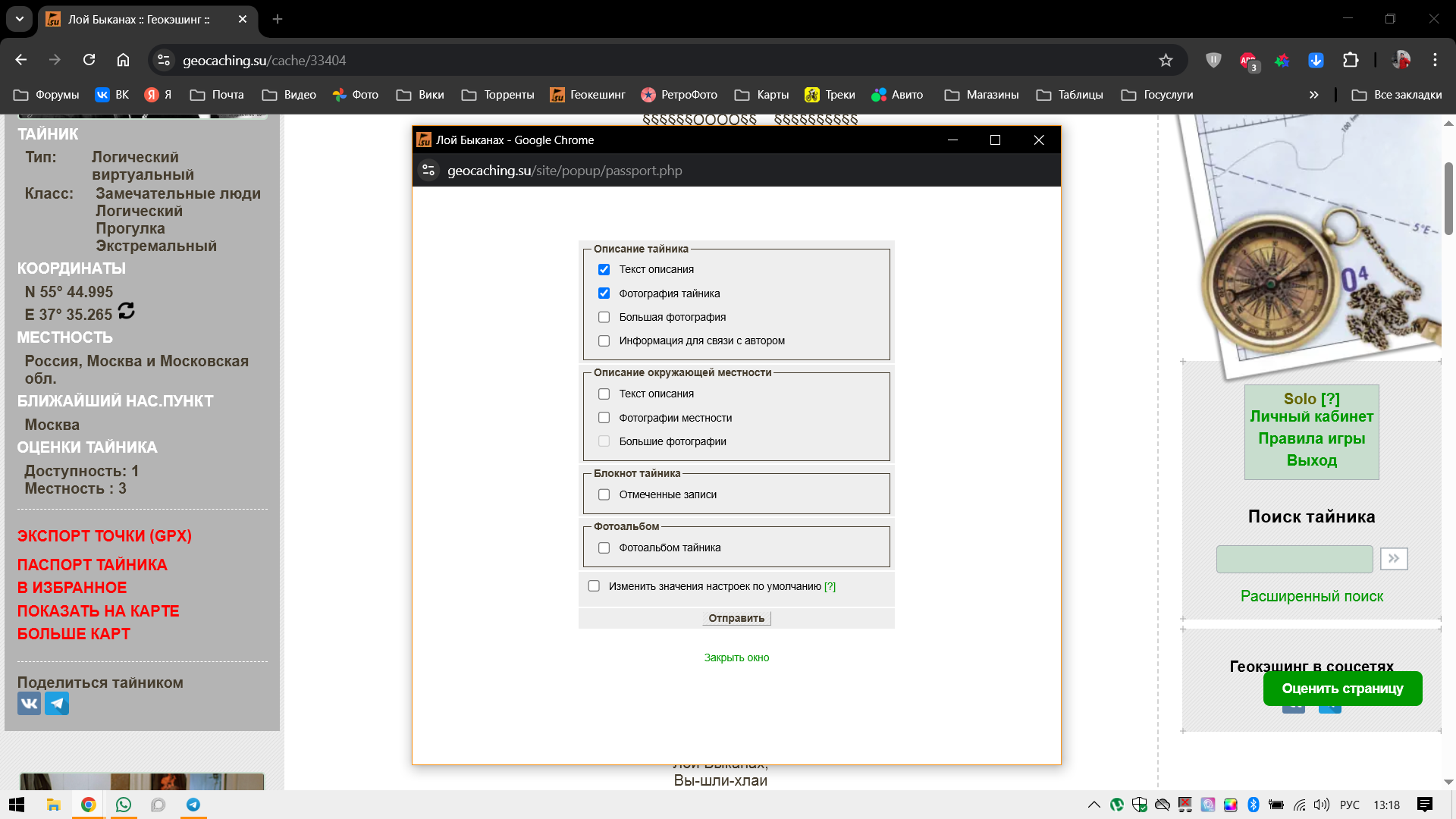 Очень прошу в текстах описаний тайников отображать координаты не просто текстом, а ссылками на яндекс-карты. Ибо очень задалбывает на телефоне вручную выделять координаты и копировать их в карту. Спасибо за внимание.