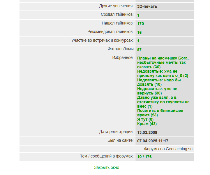 Хоть старая форма и открывалась в новом окне, что неудобно, но на поиск нужного тайника в статистике я тратил минимум 2 клика мышью. С появлением новой формы - минимум 13. Сейчас уже 4. Так гораздо лучше, благодарю за работу! Если ещё сделать чтобы выбор запоминался навсегда, то будет вообще 2 – перфекто! Потому, что мне, например, списки нужны ТОЛЬКО раскрытыми: открыл вкладку со списком и сразу Ctrl+F.