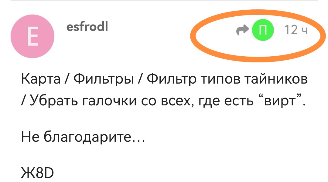 Карта / Фильтры / Фильтр типов тайников / Убрать галочки со всех, где есть “вирт”.