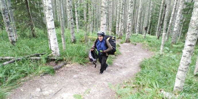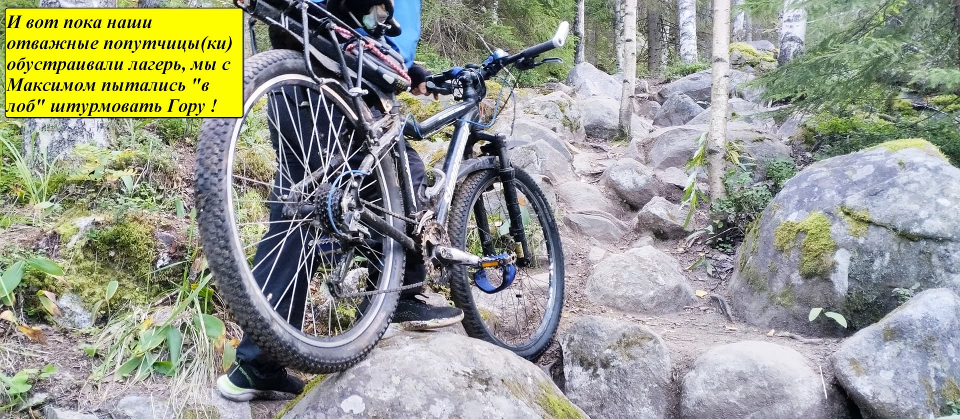 Остальные же, у кого рюкзаки были приторочены к велобагажникам, еще только подьезжали к точке подъема.